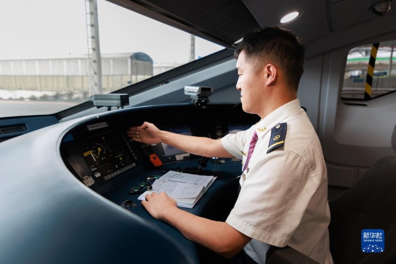 6月26日,試驗列車司機(jī)在做開行前的準(zhǔn)備工作。