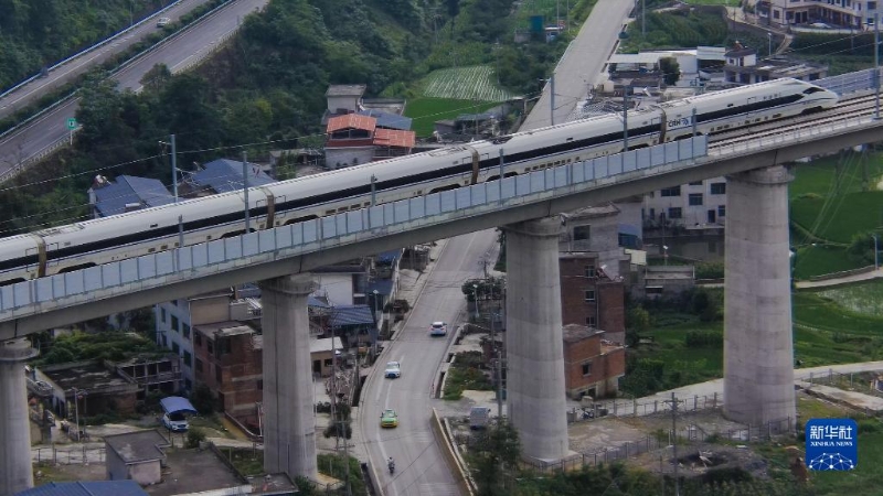 6月26日,試驗列車經(jīng)過貴州貴定縣境內(nèi)的桐子園雙線特大橋。