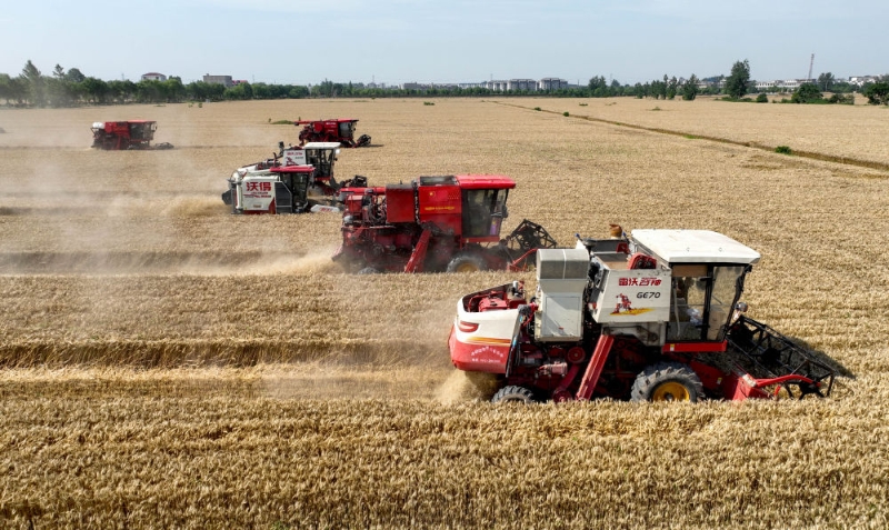 搶收壓力較大的安徽從山東、江蘇等地引入機(jī)具,“歇人不歇機(jī)”24小時(shí)搶收;由村干部、老黨員組成的應(yīng)急搶收服務(wù)隊(duì)活躍在麥?zhǔn)找痪€,機(jī)動(dòng)調(diào)配農(nóng)機(jī)保障及時(shí)搶收。麥?zhǔn)崭叻迤?,安徽日均投入收割機(jī)超過12萬(wàn)臺(tái),其中6月3日收獲小麥997萬(wàn)畝,創(chuàng)歷史新高。