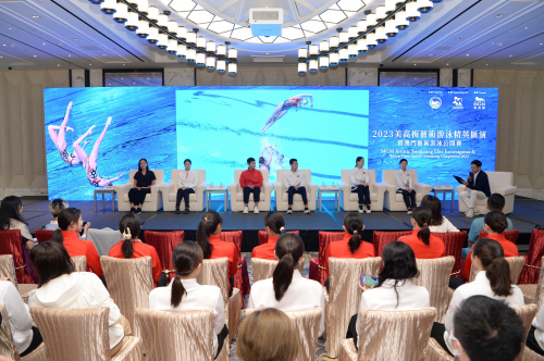 03ab美高梅增設“分享交流座談會”,一眾國家花泳運動員受邀分享各自的運動生涯并介紹花泳運動。
