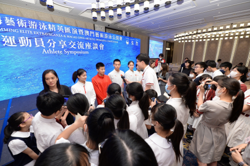 借著國家花泳高手聚首澳門的難得機會,美高梅在賽事結束后增設了“分享交流座談會”,邀請來自三支頂尖花泳隊和澳門花泳游泳隊共六位精英運動員:石浩玙、程文濤、張依瑤、楊順誠、戴詩意以及歐陽善盈,親身分享各自的心路歷程和奮斗故事,激勵青年人勇于克服困難,學習如何突破自己和挑戰(zhàn)極限;并從美學和藝術等多角度出發(fā),深入探討花泳運動。座談會吸引近200名澳門花泳游泳隊隊員、本地運動員、青年和學校師生參與。