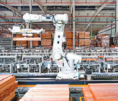 江西省贛州市南康區(qū)出臺(tái)數(shù)字化轉(zhuǎn)型獎(jiǎng)勵(lì)扶持政策,在技術(shù)攻堅(jiān)、資金獎(jiǎng)補(bǔ)、創(chuàng)新研發(fā)方面,激勵(lì)引導(dǎo)家具生產(chǎn)企業(yè)利用數(shù)字化工具、工業(yè)互聯(lián)網(wǎng)、產(chǎn)業(yè)大數(shù)據(jù)平臺(tái)提升生產(chǎn)效率,降低生產(chǎn)綜合成本,不斷激發(fā)企業(yè)數(shù)字化轉(zhuǎn)型發(fā)展?jié)撃?。圖為在南康區(qū)的一家品牌木地板上市企業(yè)智能車間,碼垛機(jī)械臂快速運(yùn)轉(zhuǎn)。
