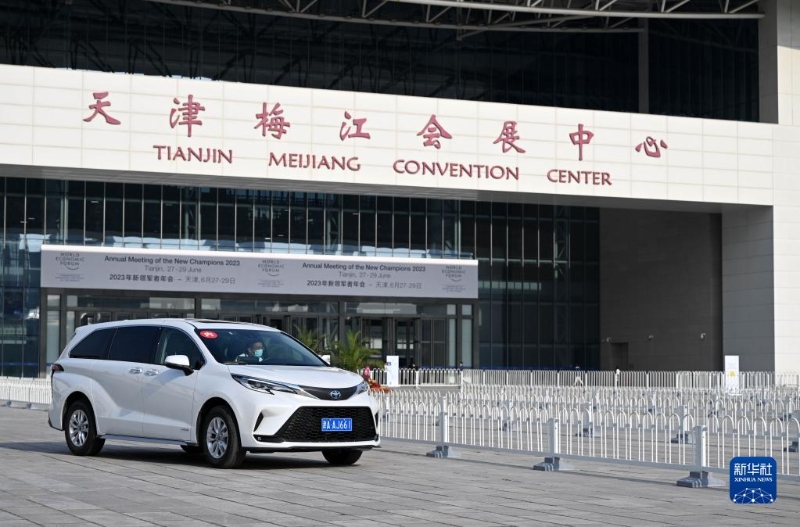 6月27日,一輛嘉賓用車(chē)從第十四屆夏季達(dá)沃斯論壇會(huì)場(chǎng)前經(jīng)過(guò)。