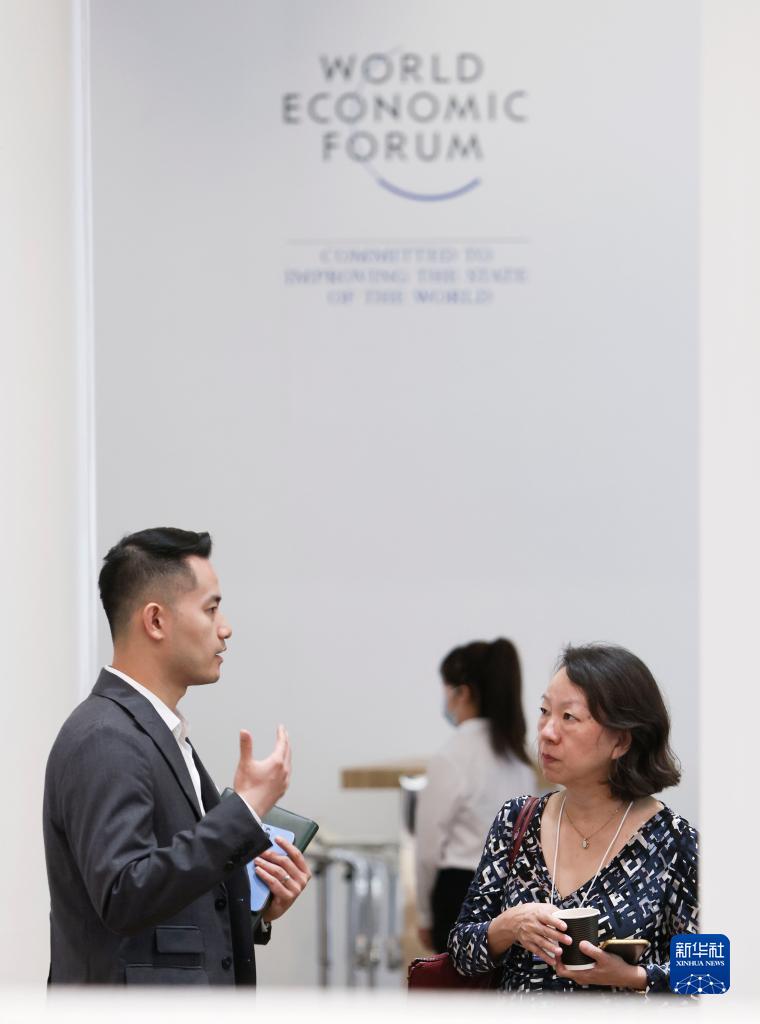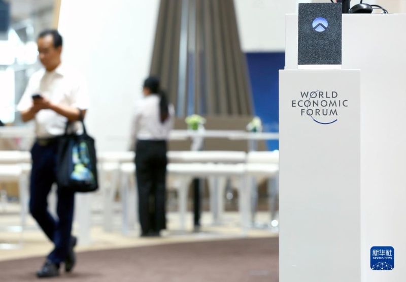 這是6月27日拍攝的第十四屆夏季達(dá)沃斯論壇現(xiàn)場(chǎng)。