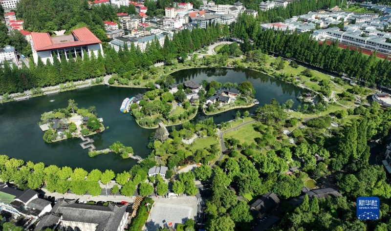 6月28日拍攝的井岡山挹翠湖公園(無人機照片)。