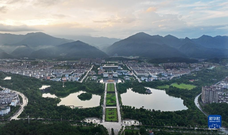 6月27日拍攝的井岡山新城區(qū)(無人機照片)。