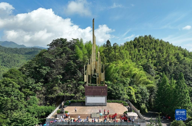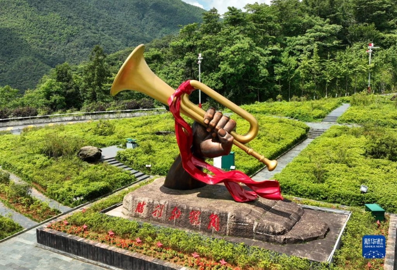 6月28日拍攝的井岡山黃洋界保衛(wèi)戰(zhàn)勝利紀念碑(無人機照片)。