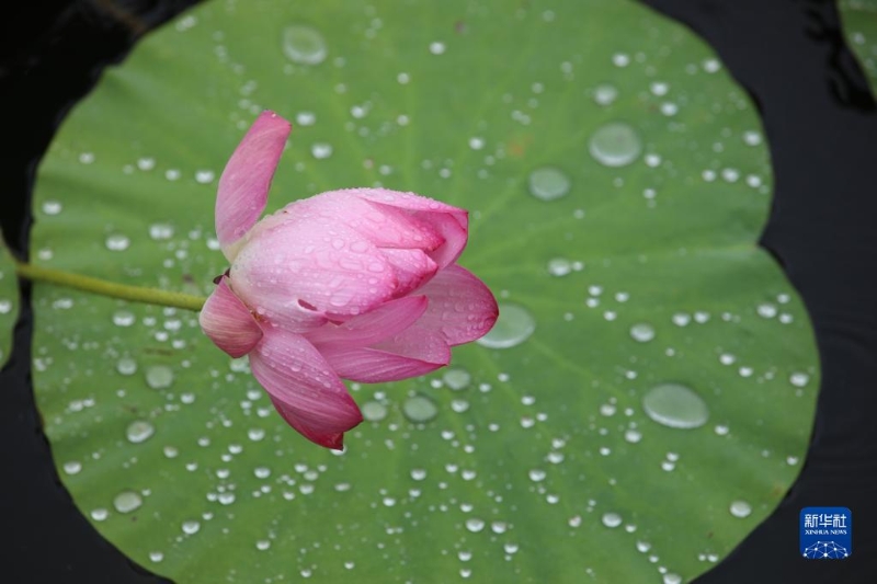 6月28日在河北省邯鄲市廣平縣中央公園內(nèi)拍攝的的雨中荷花。