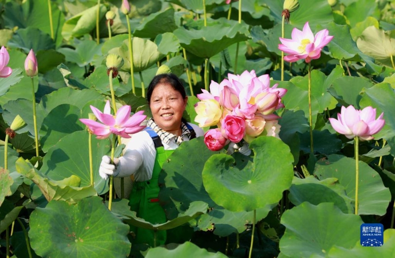 6月26日,四川省眉山市仁壽縣方家鎮(zhèn)水池村村民在荷田采收荷花。