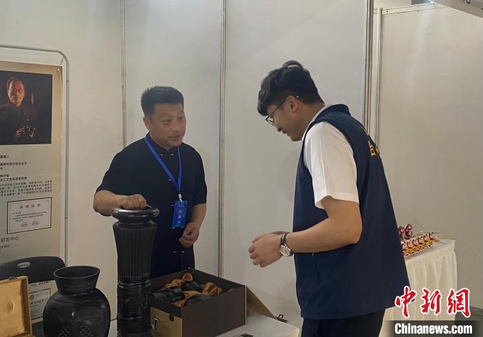 圖為臺(tái)胞參觀非遺“齊河黑陶”?!五?攝