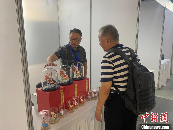 圖為臺(tái)胞參觀非遺“兔子王”?!五?攝