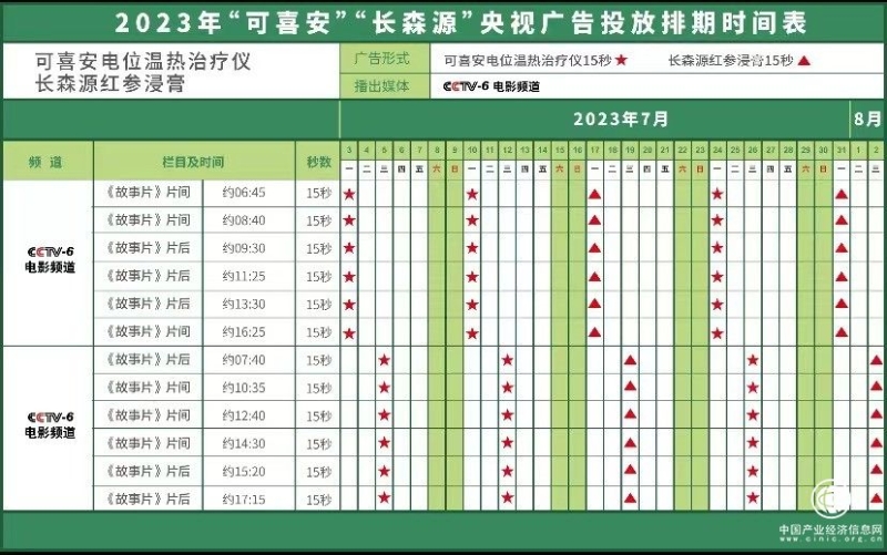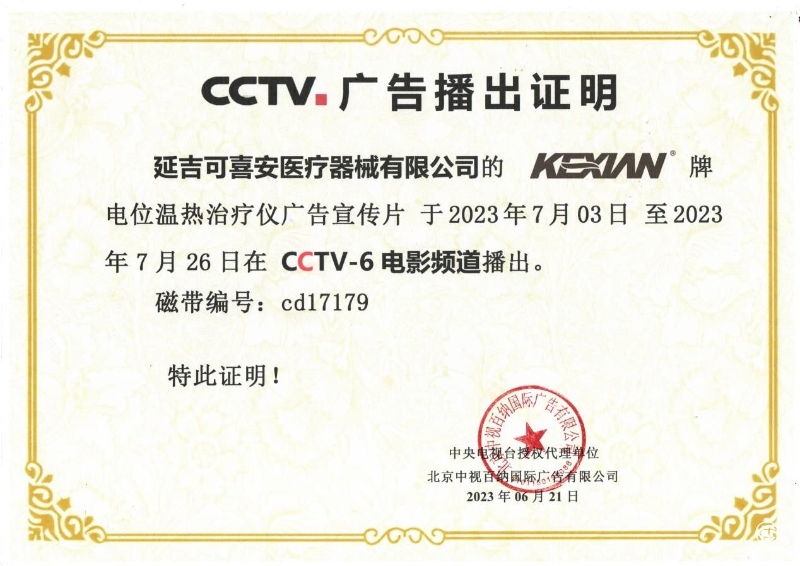7月3日,“可喜安電位溫熱治療儀”廣告宣傳片登陸CCTV-6電影頻道《故事片》,開啟為期近1個月的持續(xù)性展播。