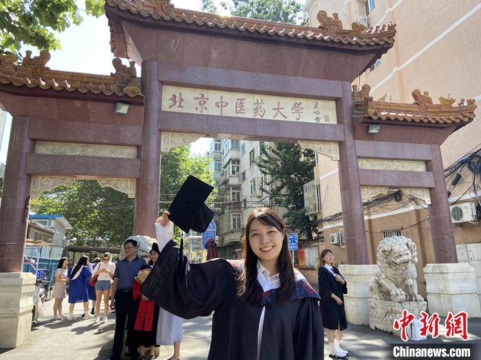 圖為劉沂柔在北京中醫(yī)藥大學(xué)校門前留影。中新社發(fā) 受訪者供圖
