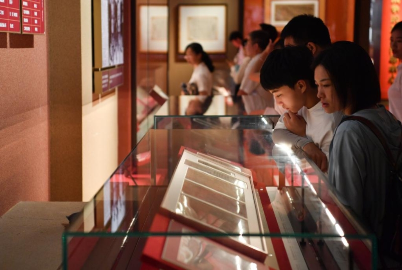 6月30日,觀眾在延安革命紀念館觀看《偉大歷程——中共中央在延安十三年歷史陳列》。新華社記者 張博文 攝