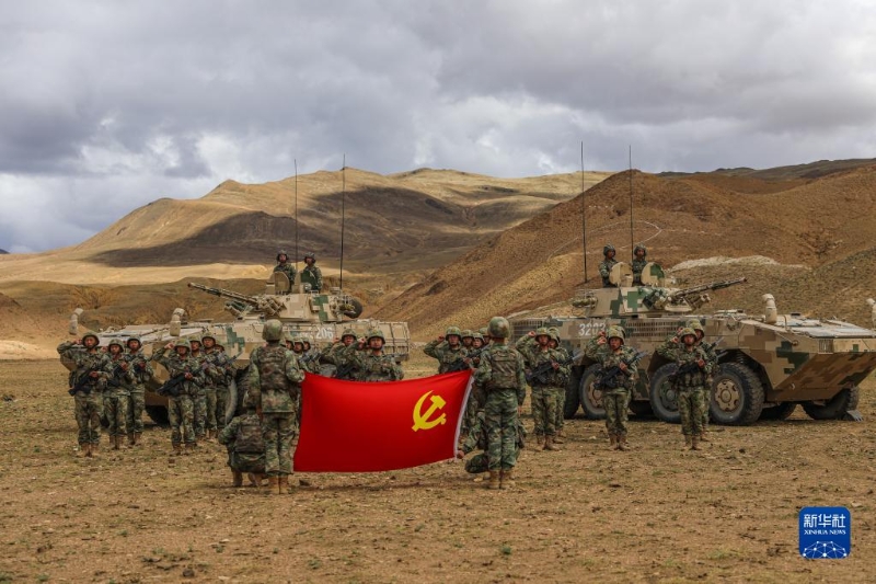第77集團軍“尊干愛兵模范連”官兵在雪域高原駐訓地開展主題黨日活動(6月29日攝)。