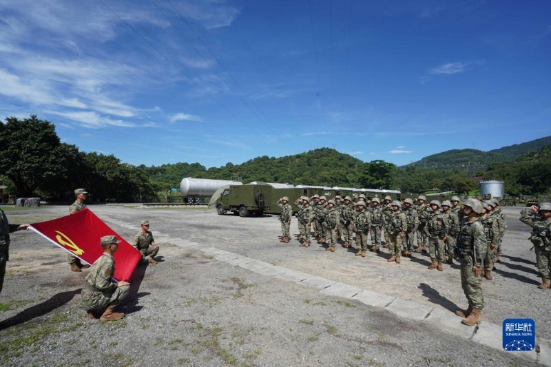 聯(lián)勤保障部隊某部組織官兵在演訓期間重溫入黨誓詞(6月30日攝)。