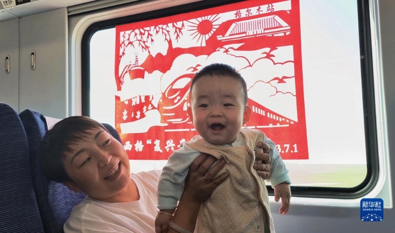 7月1日拍攝的C891次西寧至格爾木動(dòng)車組列車上的一名小乘客。