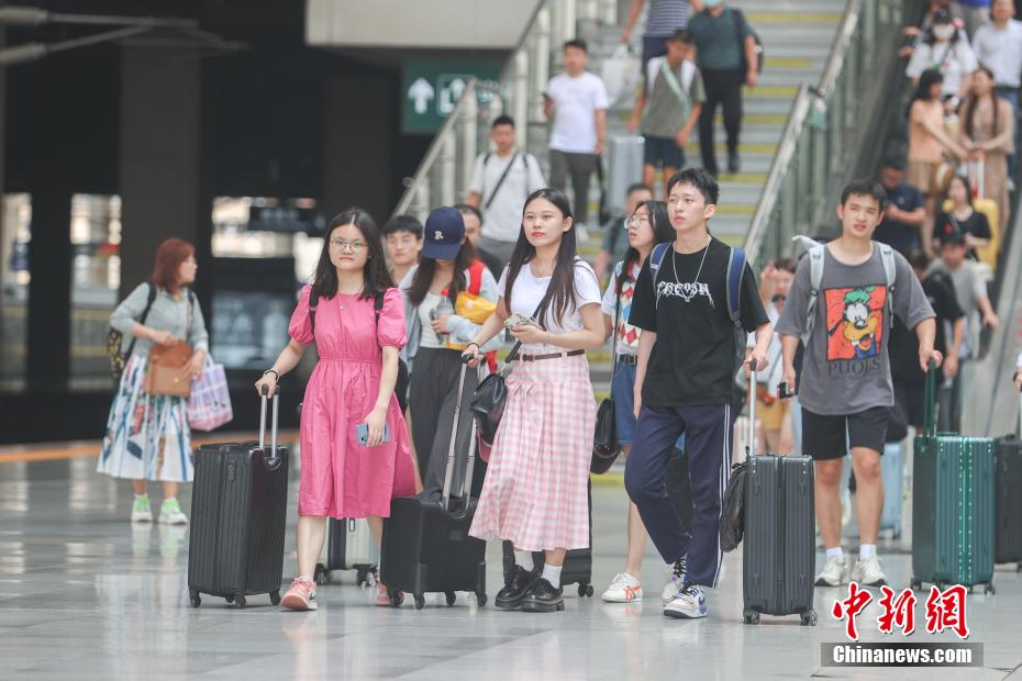7月1日,江蘇南京,旅客在火車站出行。當(dāng)日,為期62天的2023年中國鐵路暑期運輸啟動。據(jù)悉,7月1日至8月31日,全國鐵路預(yù)計發(fā)送旅客7.6億人次,日均發(fā)送1200萬人次以上。中新社記者 泱波 攝