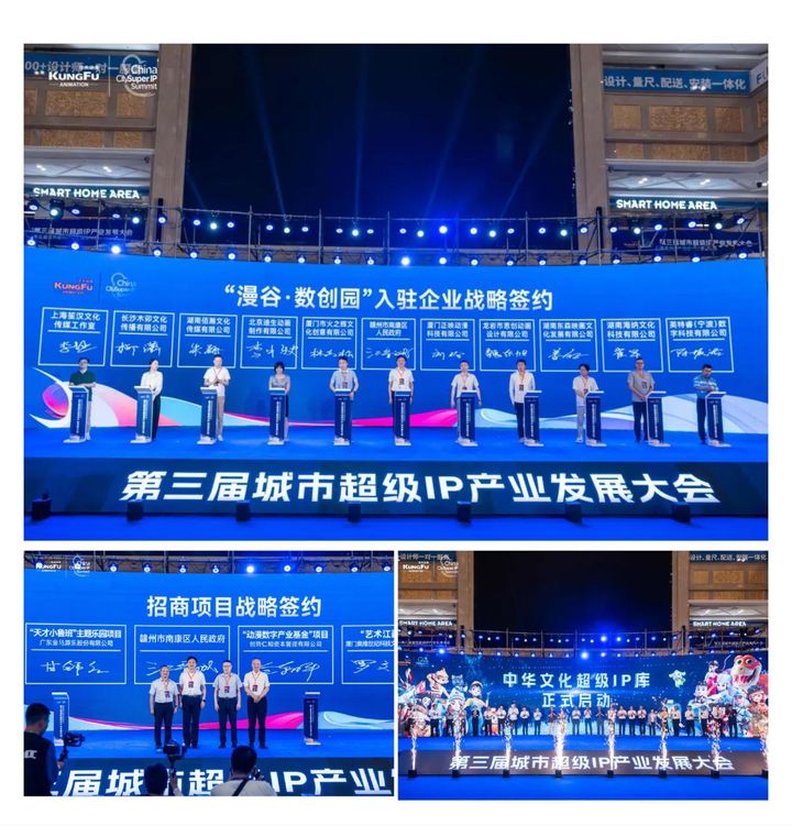 6月28日,第三屆城市超級IP產業(yè)發(fā)展大會在江西省贛州市南康家居小鎮(zhèn)成功舉辦。本屆大會是由江西省委宣傳部、江西省廣播電視局指導,贛州市人民政府主辦,贛州市南康區(qū)人民政府、功夫動漫股份有限公司承辦。特邀全國各地城市政府代表、知名企業(yè)高管、學術領域大咖等600余人。圍繞城市超級IP產業(yè)的創(chuàng)新發(fā)展,講好中國故事,傳播好中國聲音,助力中華文化動漫數(shù)字全產業(yè)鏈發(fā)展等主題進行了精彩的發(fā)言與對話,打破壁壘,直擊痛點,融合賦能,以政策解惑、產業(yè)實踐、科技創(chuàng)新助力各行各業(yè)把握趨勢、明晰本質、共創(chuàng)巔峰!