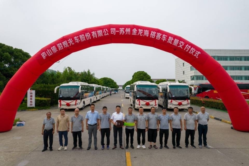 近日,20輛蘇州金龍海格客車38座KLQ6909途悅車型,正式交付廬山旅游觀光車股份有限責(zé)任公司(以下簡稱“廬山旅游觀光車”)。