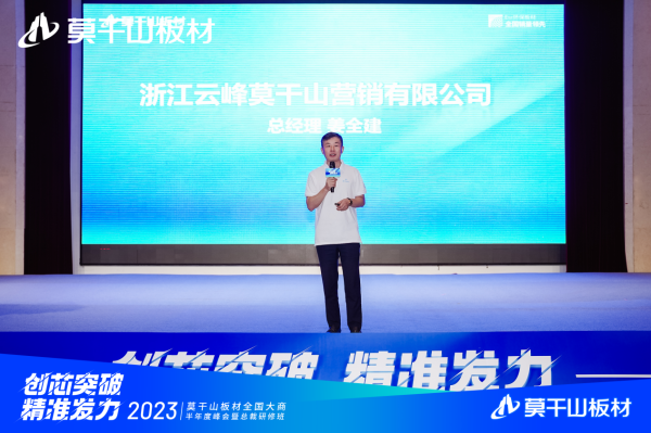 為共謀莫干山板材下半年規(guī)劃發(fā)展之路,洞悉趨勢(shì),把握機(jī)遇,6月30日至7月2日,莫干山板材于寧波召開(kāi)“創(chuàng)芯突破 精準(zhǔn)發(fā)力”2023莫干山板材全國(guó)大商半年度峰會(huì)暨總裁研修班。浙江升華云峰新材股份有限公司董事長(zhǎng)顧水祥先生,浙江云峰莫干山營(yíng)銷有限公司總經(jīng)理姜全建先生,費(fèi)縣云峰莫干山裝飾材料有限公司副總經(jīng)理沈少力先生,浙江云峰莫干山營(yíng)銷有限公司副總經(jīng)理顧仲凱先生、沈敏華先生、葉斌先生、房金秋先生,浙江云峰莫干山營(yíng)銷有限公司總經(jīng)理助理凌歡歡先生、楊紅英女士,以及莫干山板材經(jīng)銷商家人們蒞臨本次會(huì)議。