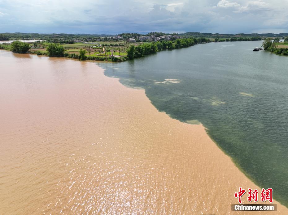 兩股江水交匯處呈現(xiàn)出類似鴛鴦糊(芝麻糊+花生糊)的效果。陳冠言 攝