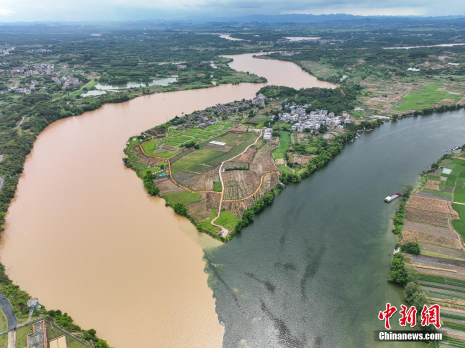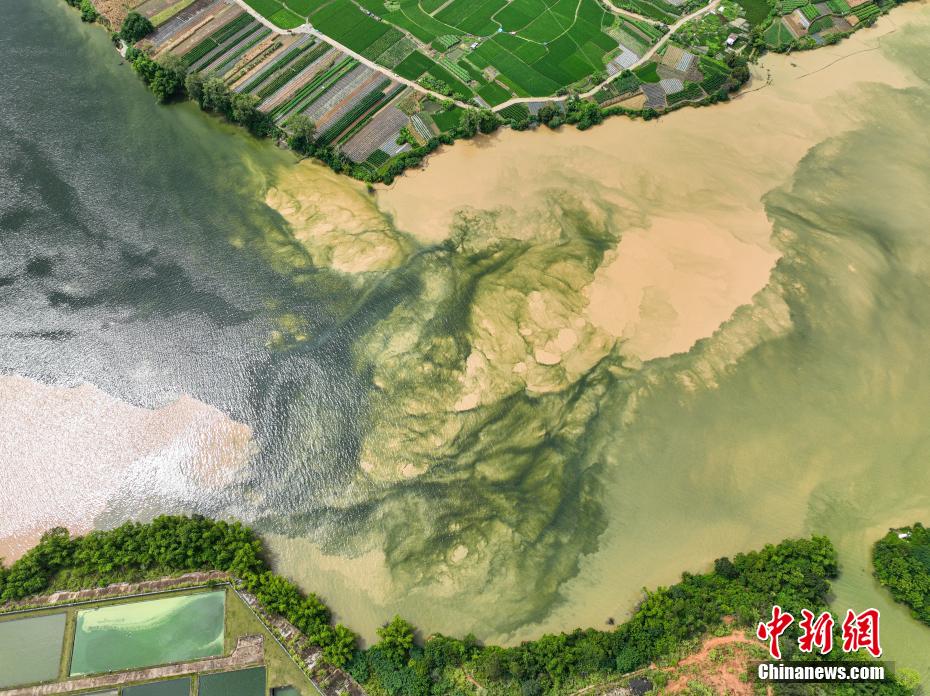 左江與右江交匯處呈現(xiàn)涇渭分明的“鴛鴦江”景觀。陳冠言 攝