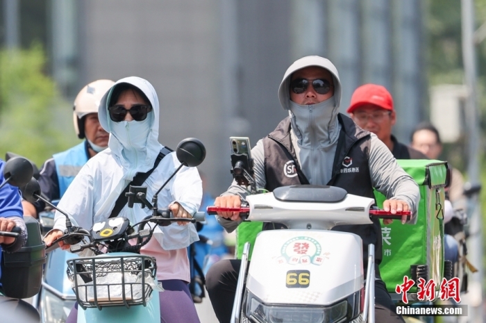 資料圖:6月23日,北京迎高溫天氣,市民在高溫下騎車出行。中新社記者 賈天勇 攝