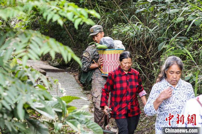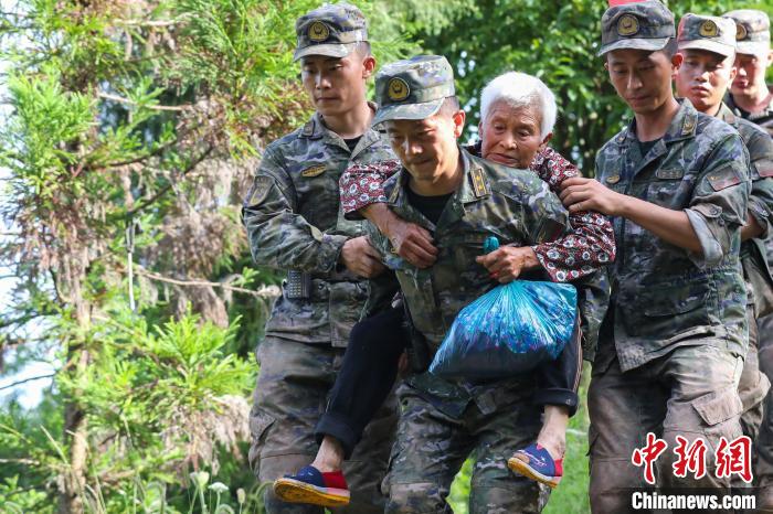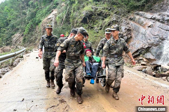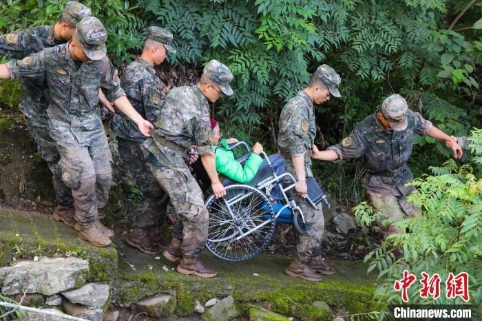 山上落石不斷,腳下步履更堅(jiān)。到達(dá)指定地點(diǎn)后,武警官兵挨家挨戶勸離疏散群眾,排查受災(zāi)情況。半山腰的居民樓內(nèi),官兵們發(fā)現(xiàn)兩名老人癱瘓?jiān)诖?,距離山下安置點(diǎn)2公里,道路狹窄,泥濘濕滑,轉(zhuǎn)移難度巨大。他們便利用現(xiàn)有工具,制作簡(jiǎn)易擔(dān)架,成功將兩位老人轉(zhuǎn)移到山下安置點(diǎn)。
