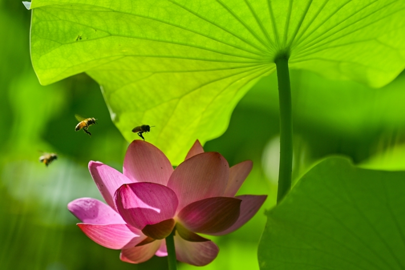 7月7日,在山東省青州市東夷文化標(biāo)志園,蜜蜂在荷花間飛舞。 當(dāng)日是小暑節(jié)氣,多地荷花綻放,荷香浮動(dòng),如詩如畫。 新華社發(fā)(王繼林?jǐn)z)