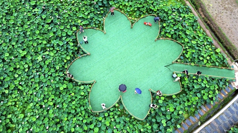 6月27日拍攝的浙江省余姚市梁弄鎮(zhèn)汪巷村荷塘(無人機(jī)照片)。新華社發(fā)(吳大慶攝)