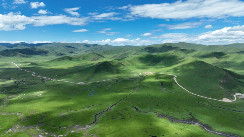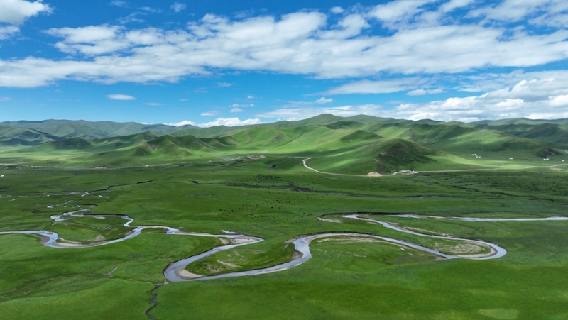 甘肅省甘南藏族自治州瑪曲縣地處青藏高原東北邊緣,占地562萬畝的瑪曲濕地是世界上保存最完整的濕地之一,被譽(yù)為“黃河之腎”。這是瑪曲縣阿萬倉濕地景色(7月6日攝,無人機(jī)照片)。新華社記者 張可任 攝