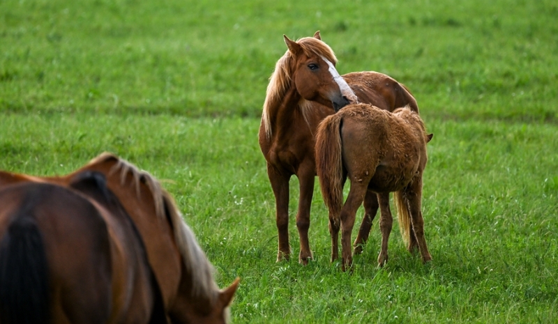 7月5日,馬群在草原上悠閑覓食、漫步。新華社記者 連振 攝
