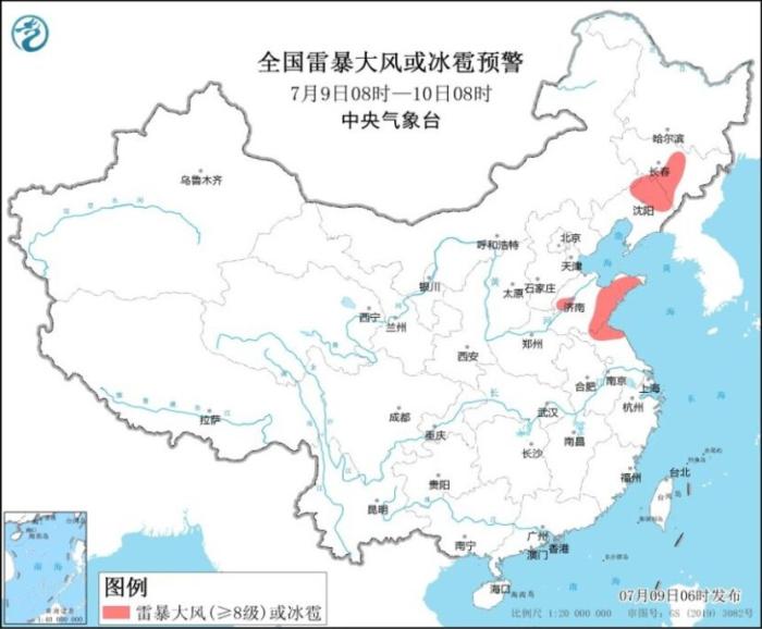 圖2 全國雷暴大風(fēng)或冰雹預(yù)警圖(7月9日08時-10日08時)