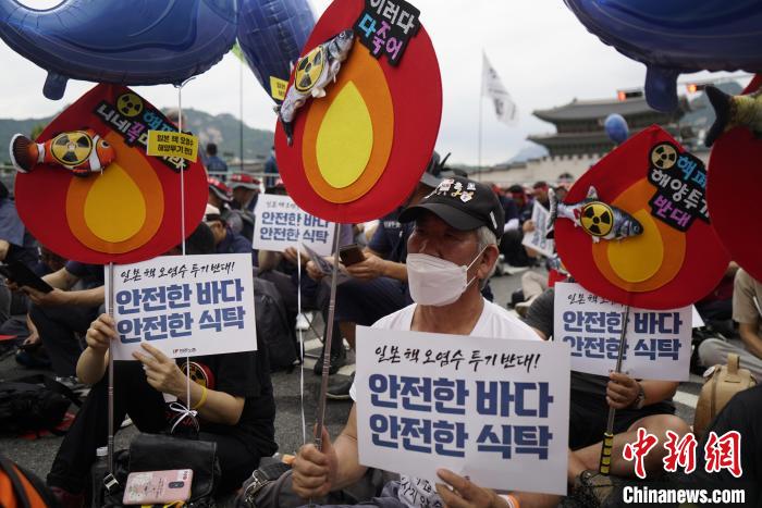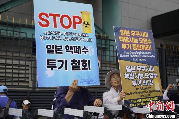 當天,韓國在野黨“正義黨”在光化門廣場游行集會,還有部分民眾在韓國外交部大樓外集會,他們手舉標語高呼口號,對日本政府不顧鄰國及國際社會擔憂執(zhí)意推動核污染水排海計劃表示憤怒。