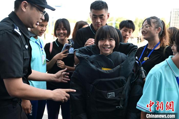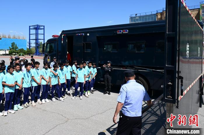 7月9日,隊(duì)員們觀看特警訓(xùn)練及警犬演示,現(xiàn)場(chǎng)體驗(yàn)警械武器和警車等裝備使用,民警講解安全防范知識(shí)。
