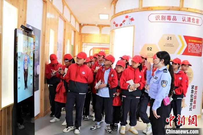 中小學(xué)生參觀林則徐禁毒警示教育基地?!∑聊峡h公安局 供圖