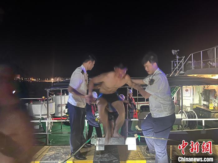 圖為搜救人員正將獲救的潛水人員接上船?!』葜莺J戮?供圖