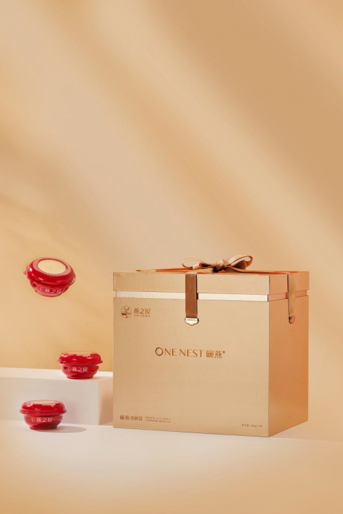 碗燕·濃鮮款為高品質(zhì)生活而匠心打造,盛器與禮盒設(shè)計亦不失高貴,儀式感滿滿。禮盒采用尊貴典雅的香檳金色調(diào),給人眼前一亮的高級感。盒蓋選用燕之屋LOGO中的花瓣型進行延展,簡約耐看,寄予“綻放”的美好寓意。禮盒內(nèi)紅金搭配的精巧小碗同樣蘊藏巧思,碗蓋以鉆石型設(shè)計,與燕窩的珍貴滋養(yǎng)相契合,別具一格。碗蓋一側(cè)設(shè)計手捏“小耳朵”,開蓋不卡頓,指尖不費力,還你優(yōu)雅好姿態(tài)。碗內(nèi)更有一層金屬易撕膜,可減少碗內(nèi)間隙空間,更好保護燕窩條狀,而且輕撕超順滑,燕窩不易撒漏,滋養(yǎng)不再浪費。此外,為滿足不同滋養(yǎng)需求,碗燕·濃鮮款特別設(shè)計兩款禮盒裝,樣樣精致。碗燕·濃鮮款(30碗裝)禮盒以層疊擺放,不占用過多空間,綁帶設(shè)計可輕松拿取。碗燕·濃鮮款(10碗裝)以上下層抽屜式設(shè)計,拿取產(chǎn)品不費勁,優(yōu)雅滋養(yǎng),從容自在。