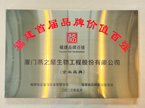 為提升福建自主品牌的影響力和生命力,助推全方位高質(zhì)量發(fā)展超越,讓更多“福建品牌” 面向全國、走向世界,奮力譜寫全面建設(shè)社會主義現(xiàn)代化國家福建篇章,福建省企業(yè)與企業(yè)家聯(lián)合會、福建省品牌建設(shè)促進(jìn)會主辦福建首屆品牌價值百強(qiáng)榜單發(fā)布暨“一帶一路”八閩知名品牌發(fā)展與合作峰會。會上,福建省首屆品牌價值百強(qiáng)榜單發(fā)布,燕之屋作為燕窩行業(yè)頭部品牌,實力入榜,被授予“福建首屆品牌價值百強(qiáng)”牌匾與證書。