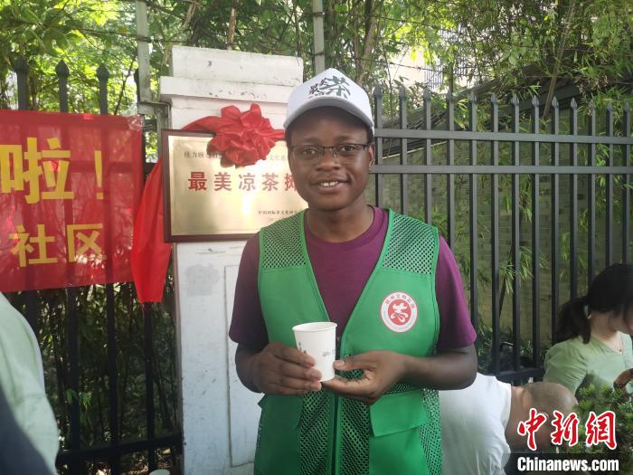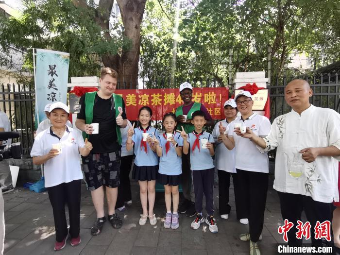 外國留學(xué)生在“最美涼茶攤”做志愿者?!堣?攝