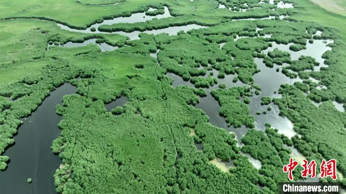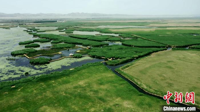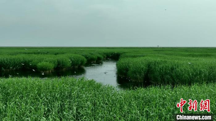 中新網(wǎng)烏魯木齊7月11日電 (王小軍 劉雨珊 黨婷)進入盛夏,中國最大的內(nèi)陸淡水湖——新疆巴州博湖縣博斯騰湖的60萬畝環(huán)湖蘆葦長勢喜人,一望無垠的戈壁灘上,綠意蔥蘢的蘆葦迎風搖曳,宛如翻滾的碧濤。