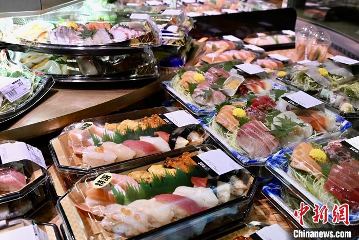 7月12日,香港特區(qū)政府環(huán)境及生態(tài)局局長(zhǎng)謝展寰表示,一旦日方啟動(dòng)排放核污染水,香港會(huì)即時(shí)禁止福島等10個(gè)縣(都)的水產(chǎn)品進(jìn)口。圖為香港一超市內(nèi)擺放的日本壽司等水產(chǎn)品。 中新社記者 李志華 攝