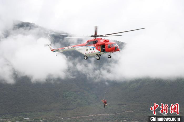 圖為直升機演練轉運傷員?!∥骼@拉翁 攝