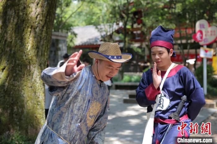 中新網(wǎng)南平7月12日電 (葉秋云)福建省南平武夷山景區(qū)的九曲溪畔,十余名身著漢服的游客在武夷宮綿延300余米的宋街上穿梭。這一幕發(fā)生于7月10日,《武夷山上有仙靈之武夷小密探》劇本殺游戲正式上線。