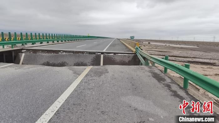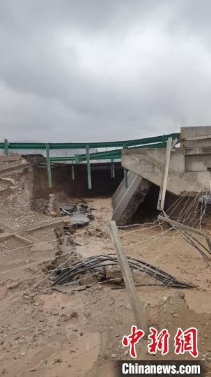 圖為G6(京藏)高速茶格路段2540km至2541km處因降雨引發(fā)洪水沖毀橋梁,導(dǎo)致路面中斷?!∏嗪J」矎d交通警察總隊(duì)供圖