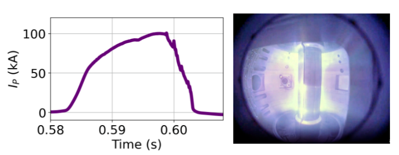 SUNIST-2由清華大學(xué)設(shè)計、星環(huán)聚能和清華大學(xué)聯(lián)合建設(shè),于近日成功運(yùn)行,并獲得100千安培等離子體電流,順利達(dá)到初期目標(biāo)。典型放電波形(左)和等離子體圖像(右)如下圖。之后星環(huán)聚能將基于SUNIST-2從原理上驗證磁重聯(lián)加熱技術(shù)和多沖程運(yùn)行方式,為建設(shè)下一代聚變級技術(shù)驗證裝置CTRFR-1作準(zhǔn)備。