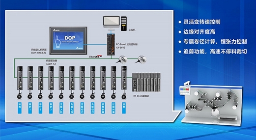 臺達(dá)解決方案從工藝難點出發(fā),專屬的控制模塊能夠解決工序中的張力控制、糾偏控制、溫度控制、涂布頭控制等工藝難題,確保設(shè)備運轉(zhuǎn)的同步精度和提高運行速度等。