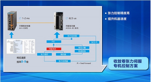 通過精益的程序設(shè)計,使得涂布機(jī)、輥壓機(jī)、分切機(jī)、模切機(jī)、卷繞機(jī)、疊片機(jī)等設(shè)備的張力控制精度大幅增強(qiáng),以提升設(shè)備的運轉(zhuǎn)速度;