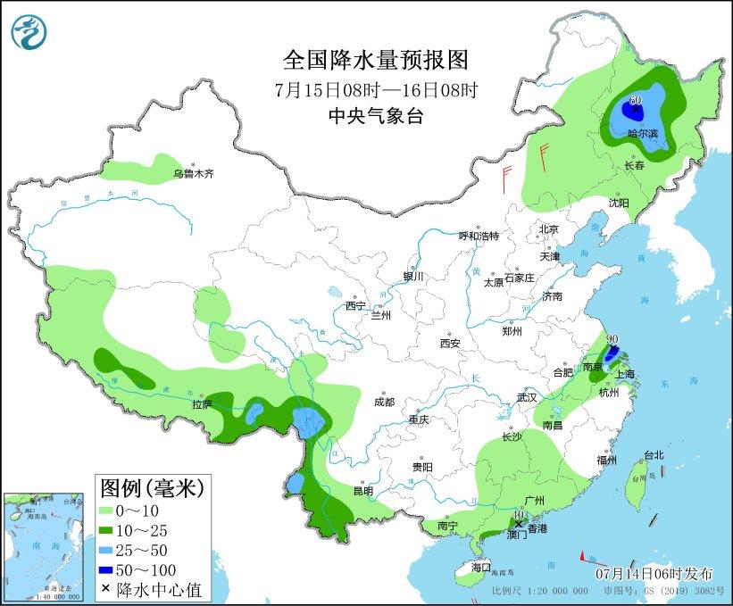 14-15日,內(nèi)蒙古東部、黑龍江大部、吉林大部等地有中到大雨,部分地區(qū)暴雨,局地大暴雨。14-16日,江蘇中南部、安徽中部等地有中到大雨,局地有暴雨或大暴雨。
